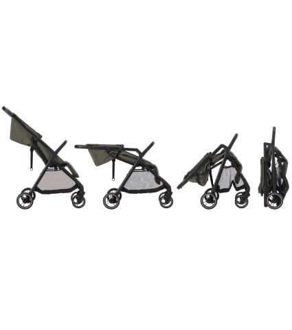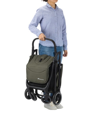 Pliez automatiquement votre poussette pour obtenir un ensemble compact et peu encombrant qui tient en position verticale.