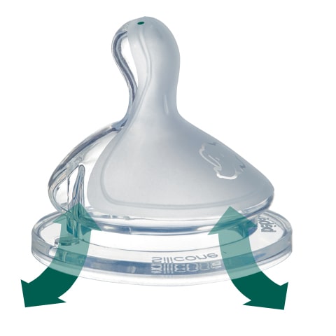 Chaque tétine est dotée de valves qui régulent l'ingestion d'air, garantissant une tétée plus confortable, tout en contribuant à réduire les gaz, les régurgitations et les coliques.