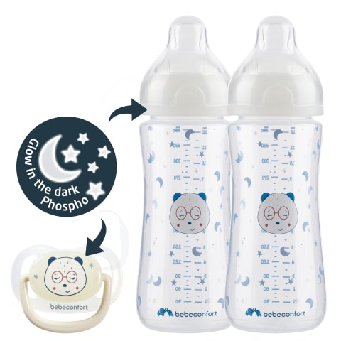 Des bagues phosphorescents sur les biberons facilitent l'alimentation nocturne, vous guidant même dans la pénombre. La sucette phosphorescente est facile à trouver dans l'obscurité.